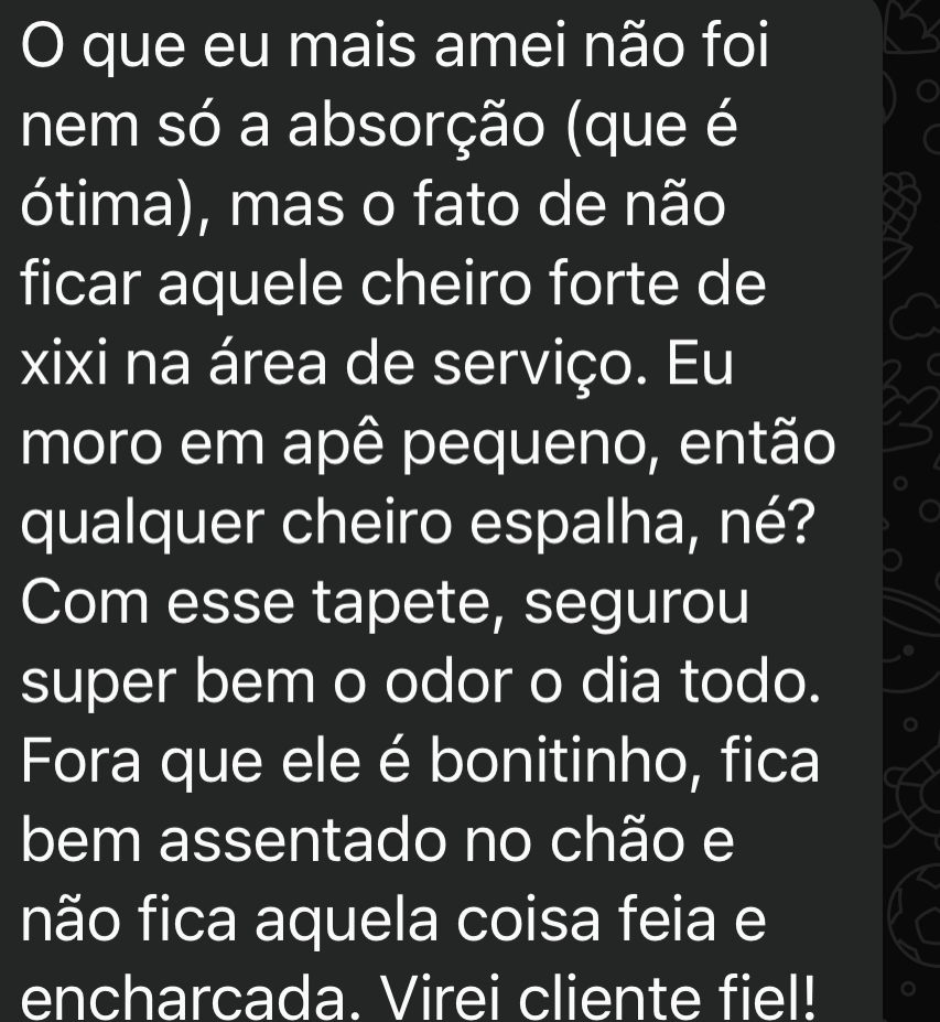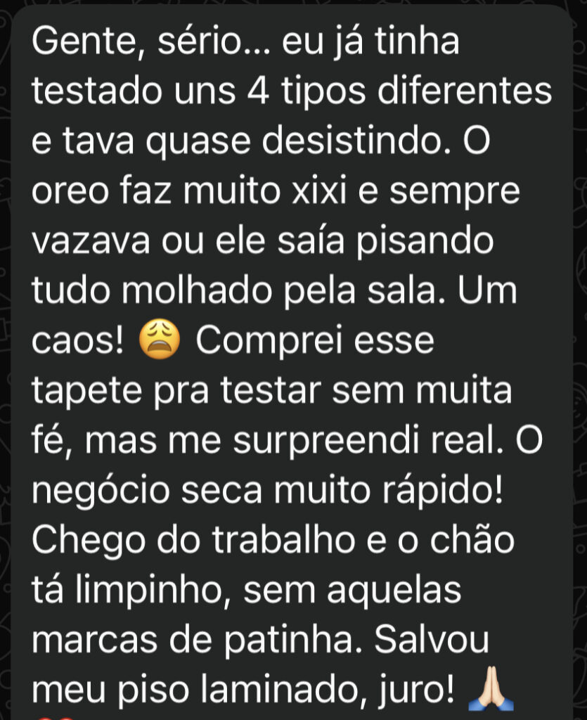Clientes que já testaram o tapete higiênico e comprovaram a diferença na rotina, na limpeza e no custo-benefício.